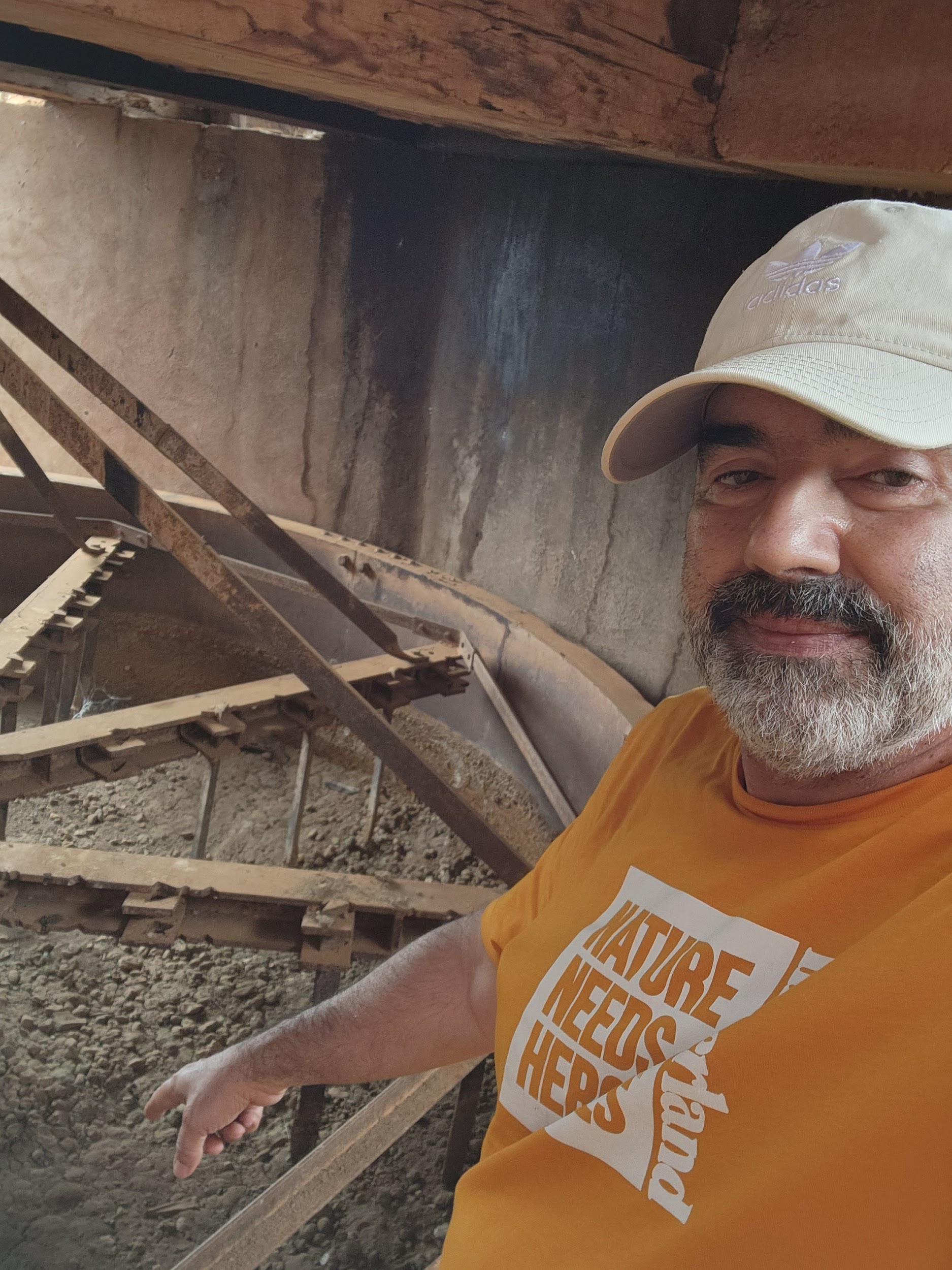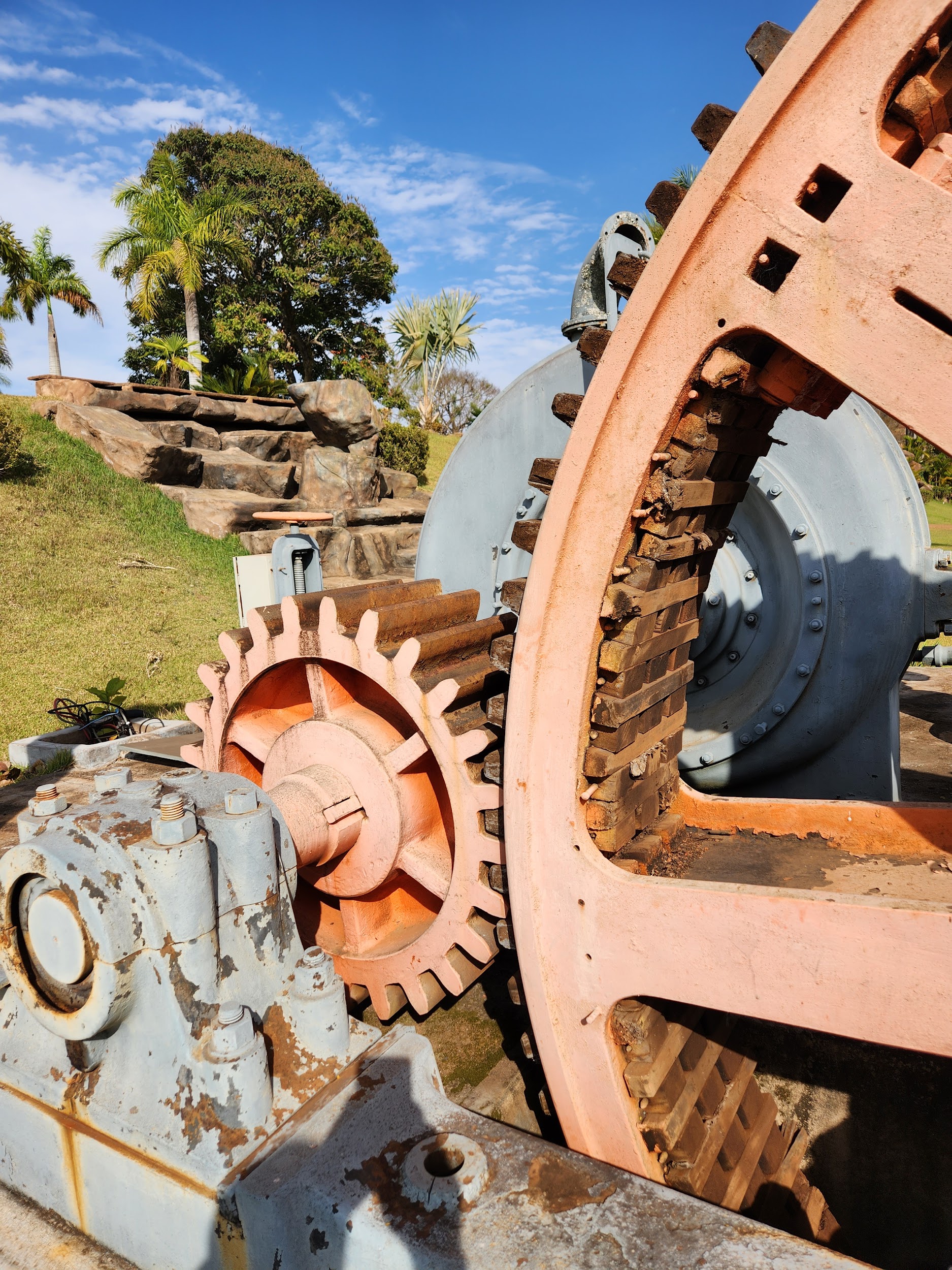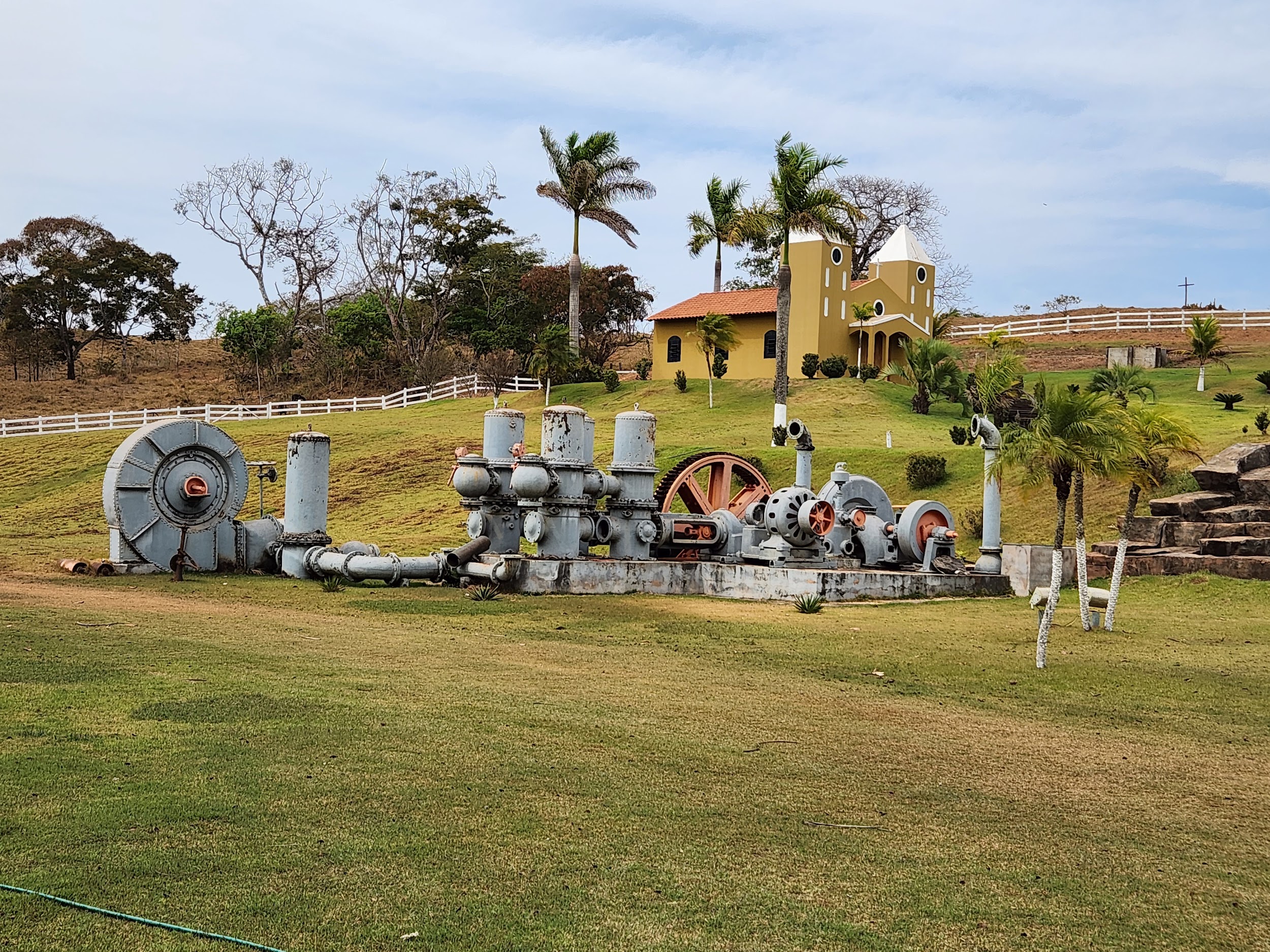 Detalhe do que sobrou da antiga PCH. O maquinário foi resgatado e montado de forma artística na Fazenda Barracão da família Stein Pena em Romaria MG.