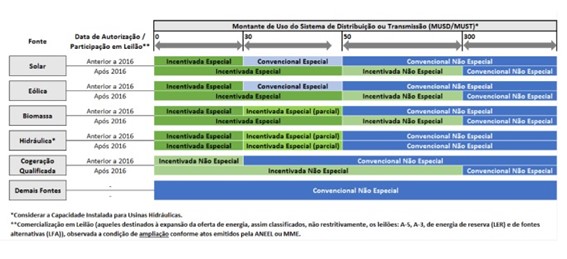 Energia Convencional: Empreendimentos não enquadrados nas condições anteriores. Características Comerciais: i) Não confere desconto nas tarifas de uso dos sistemas de Transmissão e distribuição a consumidores livre; ii) Confere lastro somente a consumidores livres; iii) Não é permitida a venda a consumidores especiais.