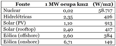 As fontes de energia eólica e solar apresentam baixa densidade de potência e baixa densidade de energia quando comparadas às fontes convencionais, em especial os hidrocarbonetos. Mesmo com os custos declinantes e aparentemente competitivos, os custos de energia elétrica sobem com os custos indiretos destas fontes: subsídios, armazenamento/baterias, expansão da geração térmica para fixar estas energias não despacháveis e intermitentes.