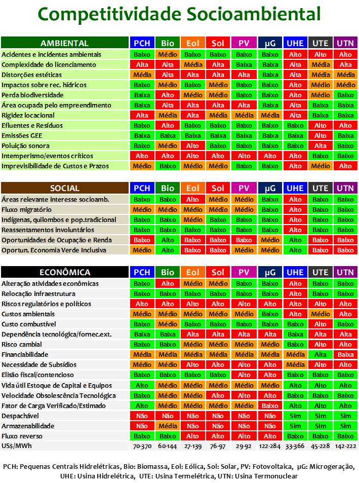 Os impactos ambientais provocados por fontes alternativas, em larga escala, podem ser tão significativos quanto os decorrentes das fontes convencionais. Isto permite concluir que, qualquer fonte de energia que passe a ter uso intensivo, pode gerar impactos socioambientais tão graves e intensos quantos as fontes tradicionais que pretende substituir. Cada tipo de fonte de energia tem sua aplicação e lugar na matriz energética. A escolha deve considerar as especificidades locais e o custo de oportunidade socioambiental. Nenhuma fonte pode ser desprezada!