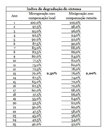 Taxa de degradação dos módulos fotovoltaicos: ou o declínio na geração de energia ao longo do tempo, varia de acordo com o fabricante e o modelo.