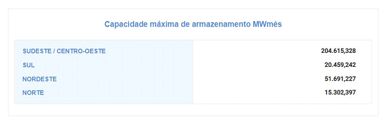 A capacidade de armazenamento do SIN é da ordem de 292 GW mês. Todavia, o grau de regularização continuará reduzindo nos próximos anos, aumentando tanto a dependência de períodos chuvosos para o replecionamento dos reservatórios a cada ciclo hidrológico anual, quanto a importância das condições de armazenamentos iniciais no final da estação chuvosa (abril) para assegurar o pleno atendimento da carga.