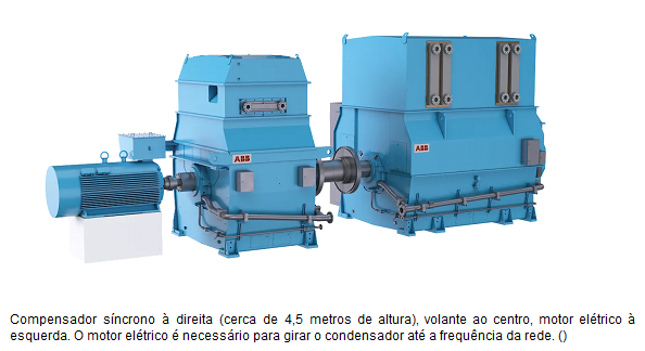 A figura abaixo mostra o maior volante de inércia do mundo instalado na Irlanda. Pesa 200 toneladas e gira a 3.000 RPM. A particularidade do equipamento fabricado pela Siemens Energy, é seu tamanho enorme: pesa nada menos que 130 toneladas, somadas às 66 toneladas do compensador síncrono. Esse enorme peso gira a 3.000 rpm, atuando como um estabilizador eficaz da rede. Juntos, formam uma inércia de 4.000 GW/s. Foram investidos € 85 milhões.