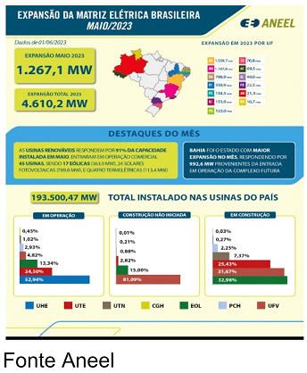 A expansão da Matriz Elétrica Brasileira no primeiro semestre de 2023 pode ser observada na figura a seguir: