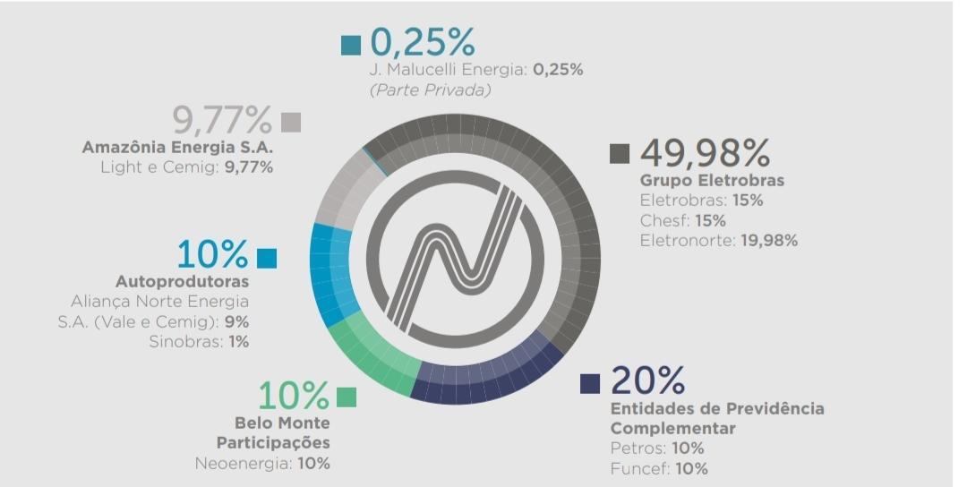 A Norte Energia é uma sociedade anônima, de capital aberto e seus acionistas são provenientes de diferentes segmentos de atuação, além dos fundos de pensão.