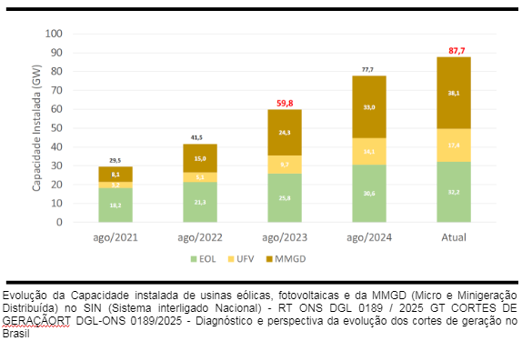 A expansão acelerada dos Recursos Energéticos Distribuídos (REDs), especialmente a Micro e Minigeração Distribuída (MMGD), adiciona uma camada extra de complexidade. A MMGD, que já ultrapassou 38 GW de capacidade instalada e deve atingir 58 GW até 2029, opera sem supervisão ou controle operacional pelo Operador Nacional do Sistema Elétrico (ONS). Os REDs permanecem fora do processo de restrição (curtailment), sobrecarregando os geradores controlados pelo ONS e, potencialmente, comprometendo a equidade da operação do sistema. Enquanto as fontes centralizadas são ajustadas para manter a estabilidade do sistema, os REDs, incluindo a MMGD, permanecem inalterados, ampliando o ônus sobre os geradores sujeitos ao despacho centralizado.
