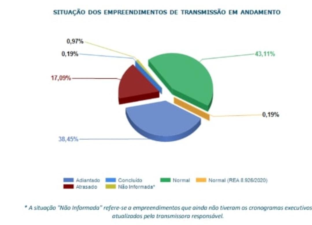O percentual de empreendimentos em andamento, com previsão em atraso varia conforme o ano estudado, e já foi , em 2013, de 83% das linhas de transmissão e em 63% das subestações de energia , e em junho de 2020 de 41,3%.