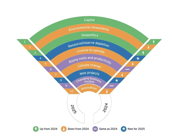 Os 10 principais riscos e oportunidades para empresas de mineração e metais em 2025 comparados com 2024